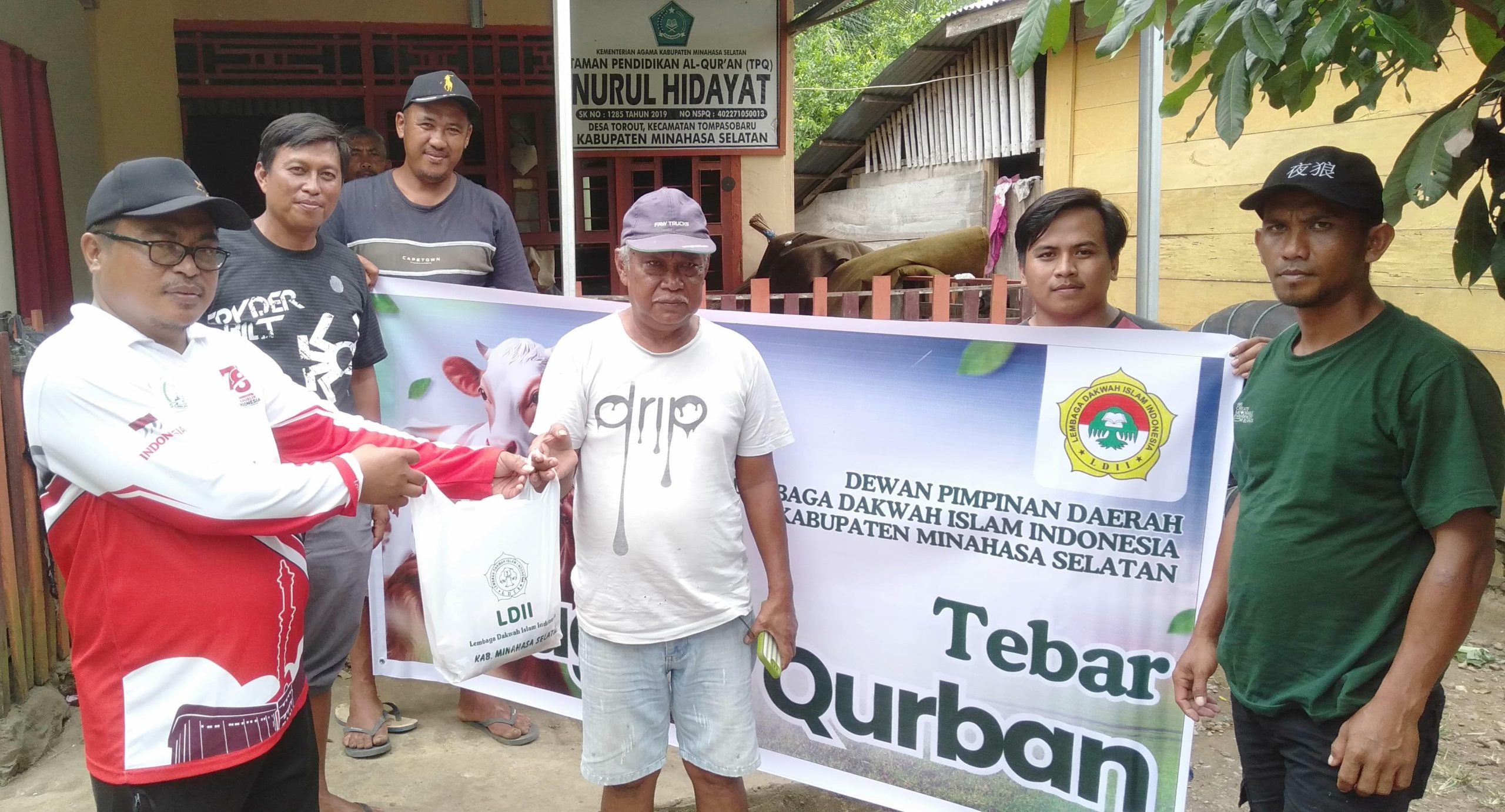 Bertempat di Desa Torout, Kabupaten Minahasa Selatan, pada tanggal 6 Juni 2025, Pimpinan Anak Cabang (PAC) Lembaga Dakwah Islam Indonesia (LDII) Desa Torout melaksanakan pemotongan hewan qurban yang khidmat dan lancar, diikuti oleh sekitar 70 orang warga, tokoh agama, dan tokoh adat.