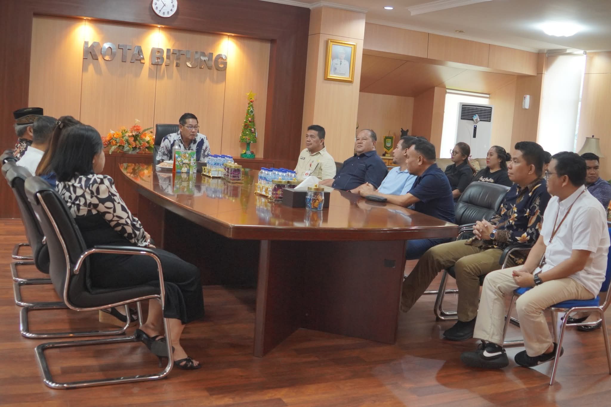 Bitung, 28 November 2025 — Wali Kota Bitung Hengky Honandar, S.E., menerima audiensi dari Forum Kerukunan Umat Beragama (FKUB) bersama Perumda Pasar Kota Bitung dalam rangka persiapan penyelenggaraan Harmony Christmas yang tahun ini mengusung tema “Harmonis Dalam Perbedaan”.