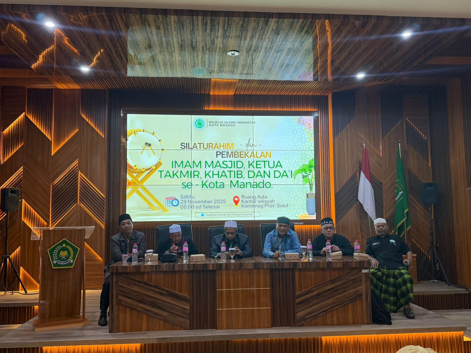 Manado, 29 November 2025 – Pengurus Dewan Pimpinan Daerah (DPD) Lembaga Dakwah Islam Indonesia (LDII) Kota Manado menghadiri kegiatan Silaturahim dan Sosialisasi yang diselenggarakan Majelis Ulama Indonesia (MUI) Kota Manado di Aula Kanwil Kemenag Sulawesi Utara. Kehadiran LDII dipimpin langsung oleh Ketua DPD LDII Kota Manado, Drs. Danu Wijaya, yang juga mewakili Takmir Masjid Baitul Ulya Buha, Mapanget, Manado. Turut hadir Imam Masjid Baitul Ulya H. Soenarwan, S.T., serta para khotib dan da’i Masjid Baitul Ulya, H. Suryadi Adi Fachrudin dan Apt. Ridwan Dawud Kristanto, S.Farm.